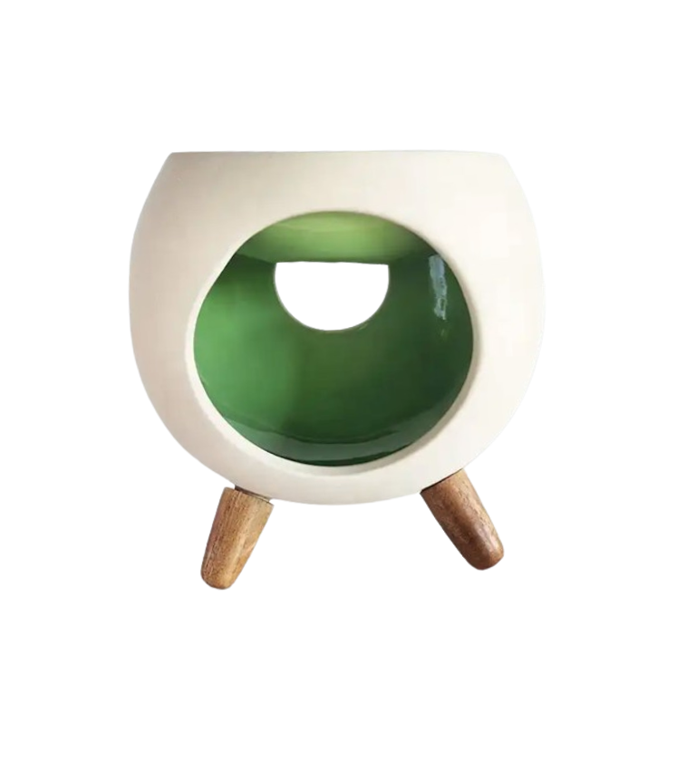 The ROUND GREEN ceramic incense burner is handmade by craftsmen who care about a job well done. It comes with a wax square to melt and three wooden feet. It measures 11 x 11 cm and is signed ANOQ.
