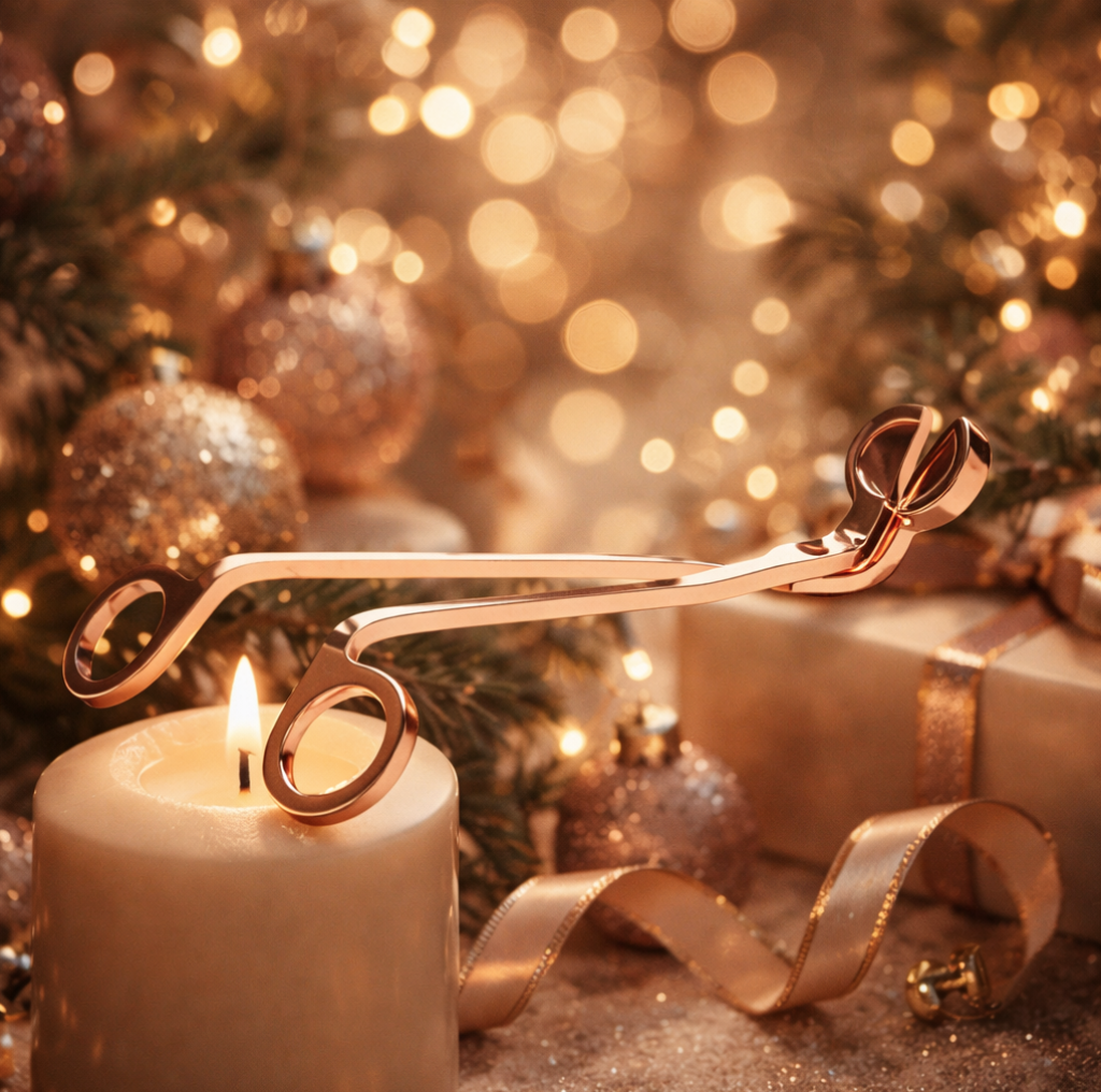 The rose-colored stainless steel candle wick cutter is an ideal accessory for reducing wicks, and also features an integrated waste catcher. It measures 18 x 6 cm and bears the ANOQ signature.