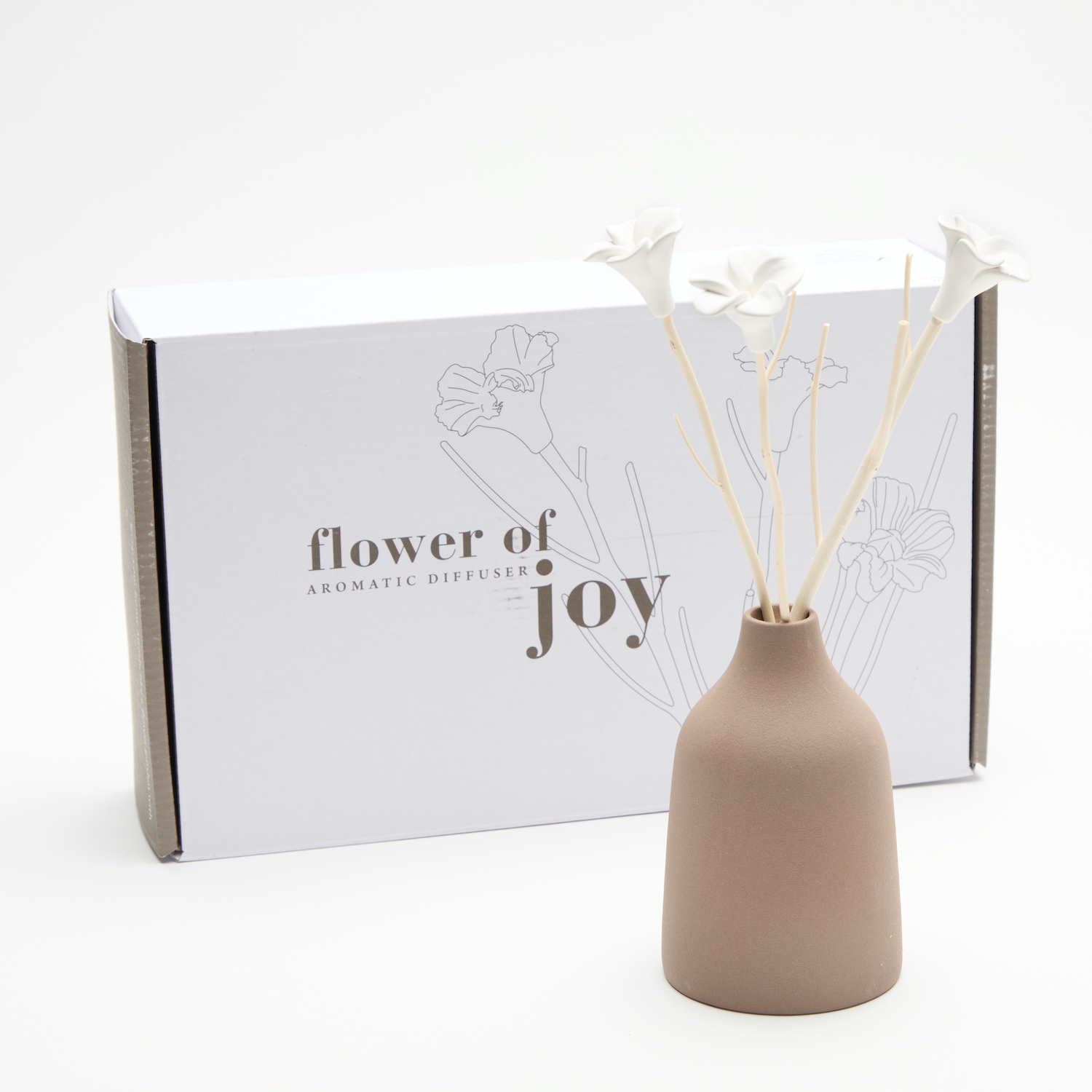 Diffuseur de parfum par capillarité. Vase, tige rotin avec fleurs en porcelaine, pour créer une ambiance parfumée et sublimer la maison