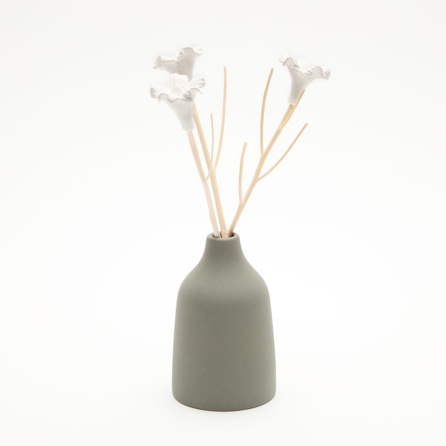 Diffuseur de parfum par capillarité. Vase, tige rotin avec fleurs en porcelaine, pour créer une ambiance parfumée et sublimer la maison