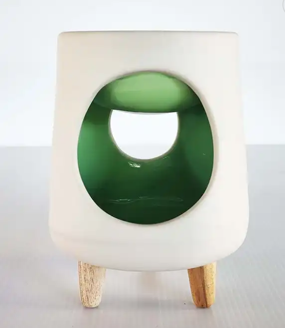 Le brûle-parfum PYRAM GREEN est une création artisanale en céramique de 13,5 cm x 10 cm doté de pieds en bois. Il s'agit d'une pièce originale de la collection ANOQ.