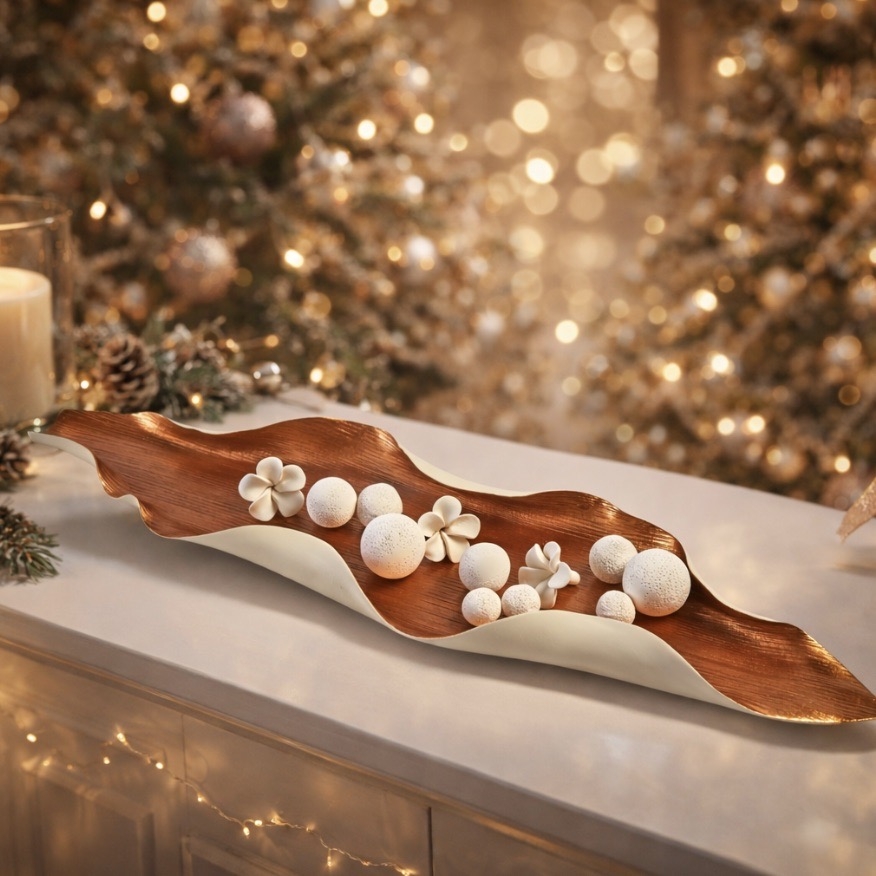 COPPER trouvera parfaitement sa place sur la table près de la porte d'entrée, sur un buffet en bois laqué ou encore une table basse, parmi d'autres objets d'intérieur tels que des bougies, des plateaux ou de petites plantes.