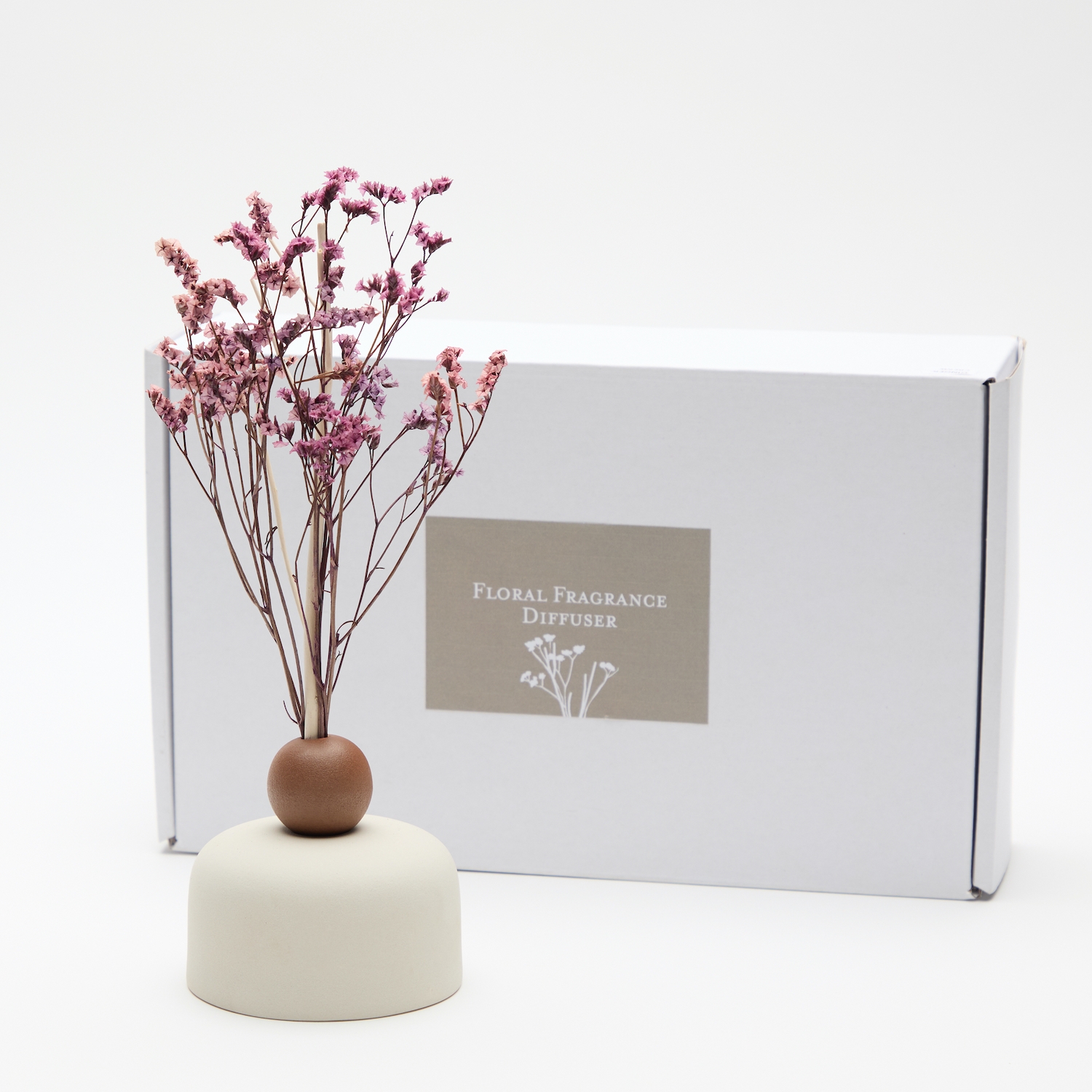 Diffuseur de parfum en céramique beige avec fleurs séchées diffusantes. Élégance et parfum subtil pour sublimer votre décoration intérieure.